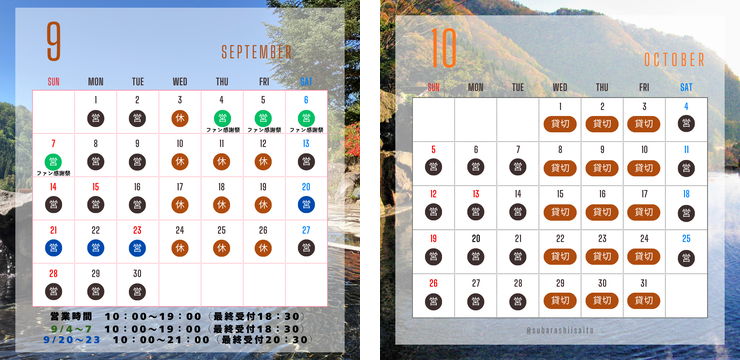 となりますので営業日カレンダーをご確認の上お越しください。